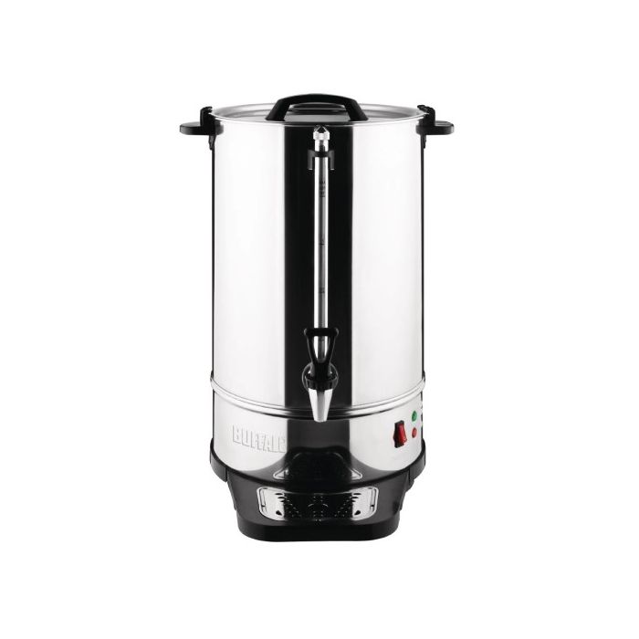 Make perfect filter coffee every time with the high capacity Coffee Percolator from Buffalo. With a huge 15 litre capacity (around 100 cups of coffee) and a powerful 1.5kW heating element, the Buffalo coffee urn is ideal for use in pubs, restaurants, offices and hotels, as well as self service or waiting areas. The Buffalo Coffee Percolator includes a handy coffee level gauge and a "ready" indicator to help prevent the machine running dry.